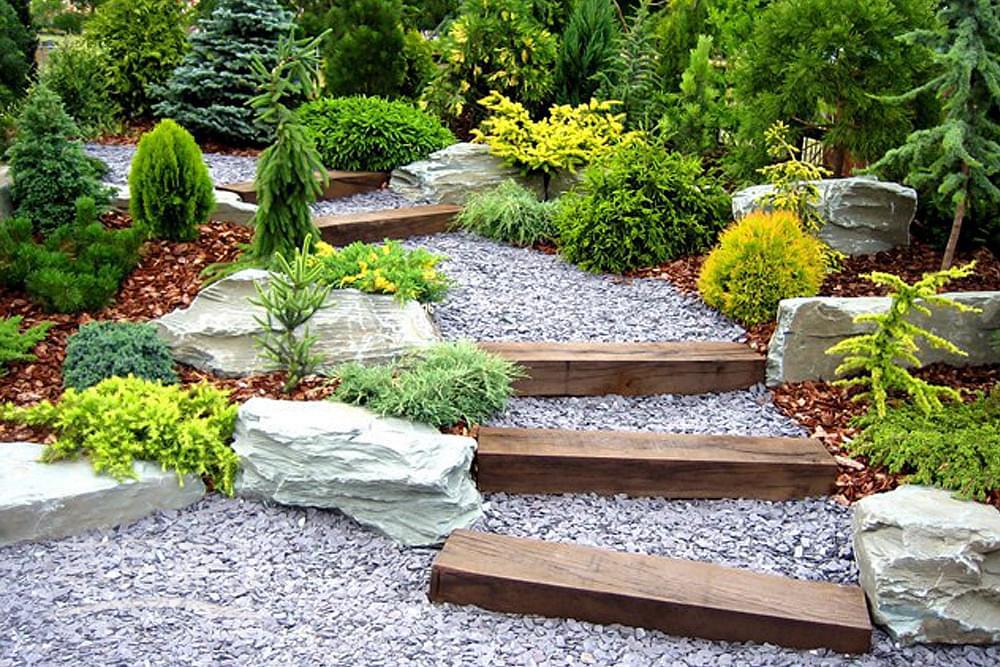 ▲小道用木樁做踏腳,處處都是亮點.